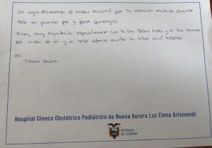Estoy muy agradecida especialmente con la Dra. Belén Nieto y la Dra. Mariana por cuidar de mí y mi bebé, admiro mucho su labor en el hospital.»